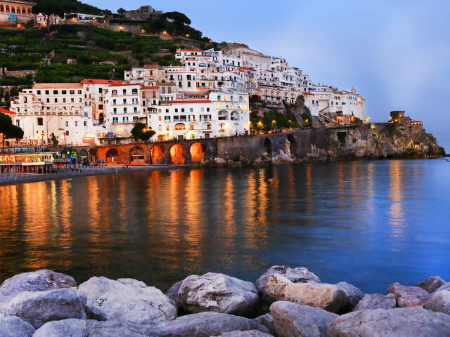 Amalfi is a town and comune in the province of Salerno, in the region of Campania, Italy, on the Gulf of Salerno, c. 35 km southeast of Naples. It lies at the mouth of a deep ravine, at the foot of Monte Cerreto (1,315 meters, 4,314 feet), surrounded by dramatic cliffs and coastal scenery. The town of Amalfi was the capital of the maritime republic known as the Duchy of Amalfi, an important trading power in the Mediterranean between 839 and around 1200. In the 1920s and 1930s, Amalfi was a popular holiday destination for the British upper class and aristocracy. Amalfi is the main town of the coast on which it is located, named Costiera Amalfitana, and is today an important tourist destination together with other towns on the same coast, such as Positano, Ravello and others. Amalfi is included in the UNESCO World Heritage Sites.